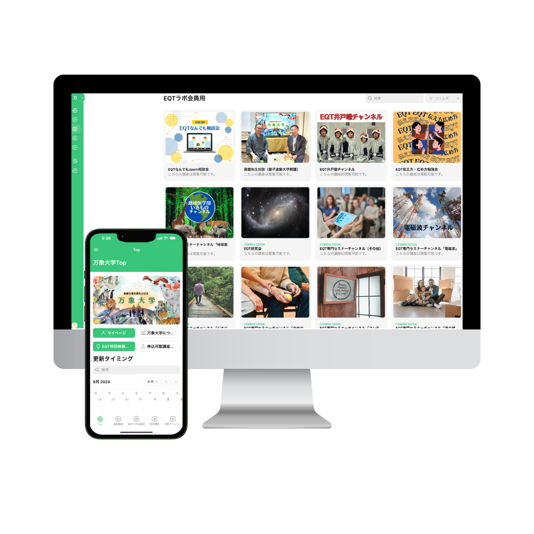 EQTの効力に範囲の制限はありません。地球規模の問題にも効力を発揮します。EQT正規代理店であるEQTラボでは、EQTを使って森羅万象を蘇生させるための万象大学を運営し共に地球を癒すドクター「地球医」を養成しています。